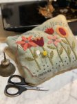 2025 Pincushion kit with pattern by Janet Rae Nesbitt of One Sister annual wool pincushion. Kit includes the pattern, wool to complete the front, and cotton backing. Floss and filling not included. Finished size 6" x 8"